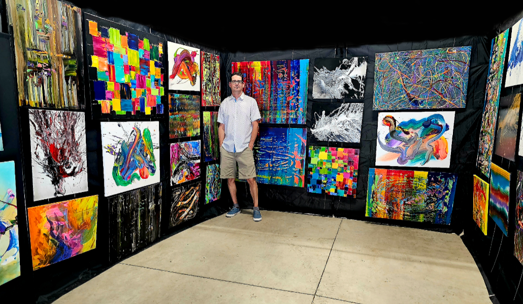 Tebbs' artistic journey began later in life, after years of honing his skills in the meticulous craft of antique wood distressing, faux finishes and fine painting for upscale residences. It was during this time that he developed a deep appreciation for painting techniques and discovered his innate passion for abstract expression.